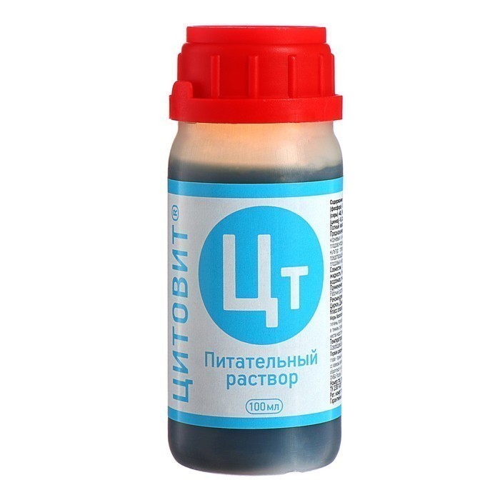 Цитовит 100 мл - высококонцентрированный сбалансированный комплекс всех жизненно важных макро- и микроэлементов в природной форме. Он восполняет недостаток необходимых элементов питания и помогает растениям при заболеваниях, вызванных дефицитом микроэлементов. Применяется на всех культурах ( овощные, плодово-ягодные, декоративно-цветочные).