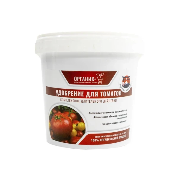 Комплексное органическое удобрение для выращивания крупных сочных томатов. Запас питания на 100 дней.