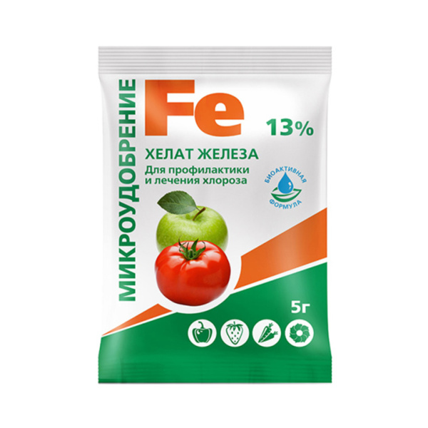 Хелат железа MУ - высокоэффективное экологически чистое водорастворимое микро-удобрение в биологически активной форме. Применяется для профилактики и лечения хлороза (дефицита железа) рассады и взрослых растений любых садово-огородных культур в теплице и открытом грунте.