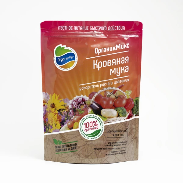 Помните, что кровяная мука разлагается быстро, основную часть питания растение получает через 4-7 дней после внесения. Поэтому рекомендуем не превышать дозировки. Для максимального эффекта вносить 1-2 раза в месяц.