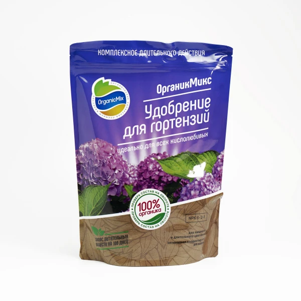 Удобрение "ОрганикМикс" для гортензий 800г – купить Удобрения для цветочных культур в Москве, доставка по России через интернет-магазин