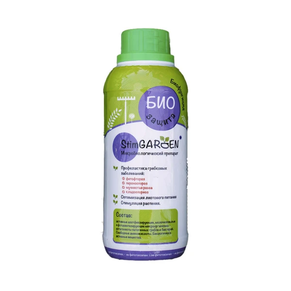 БИО защита StimGarden — микробиологический препарат, подавляет активность патогенных микроорганизмов (грибков и бактерий), инактивирует их токсины. Стимулирует рост и развитие растений, повышает их стрессоустойчивость. Активирует фотосинтез. Надежная защита и профилактика от большинства болезней.