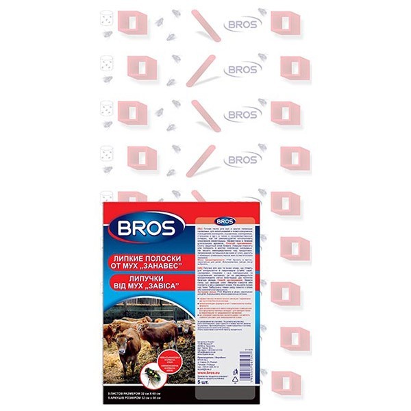BROS – КЛЕЕВАЯ ЛОВУШКА ДЛЯ ОТЛОВА МУХ И ДРУГИХ ЛЕТАЮЩИХ НАСЕКОМЫХ 5шт (32х60см)