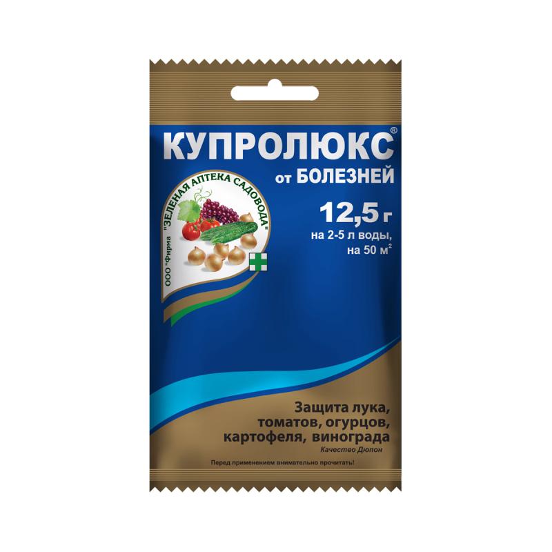 Эффективный фунгицид Купролюкс обладает системно-контактным действием, применяется для защиты и лечения растения от самых распространенных болезней: лука и огурцов от ложной мучнистой росы, картофеля и томатов от фитофтороза, винограда от милдью. Хлорокись меди убивает инфекцию на поверхности растений, а цимоксанил – системный компонент защищает и лечит изнутри.