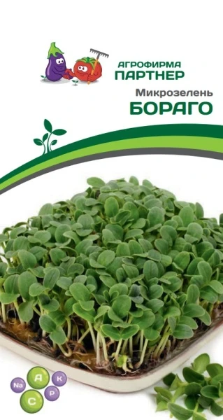 Благодаря своему свежему аромату и вкусу микрозелень бораго заслужила признание не только жителей многих стран, но и известных кулинаров. Употребление микрозелени бораго помогает снять стресс, повышает иммунитет, ускоряет обмен веществ, улучшает работу печени. В ее составе натрий, калий, фосфор, витамины А и С, а также огромное количество фитонутриентов. Молодая зелень прекрасно подходит для блюд из свежих овощей, блюд из рыбы и творога. Состав: огуречная трава Окрошка.