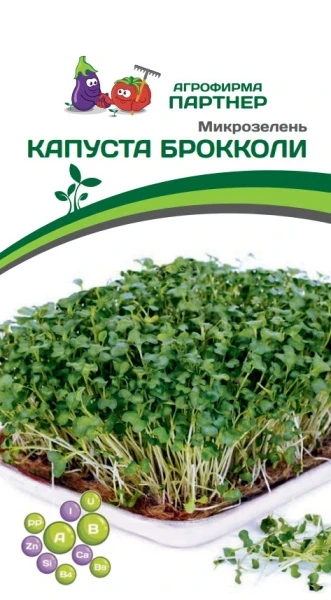 Микрозелень брокколи обладает максимальным запасом полезных веществ по сравнению со взрослым растением, отчего употребление ее в пищу считается наиболее эффективным. Она уменьшает воспалительные процессы, ускоряет обмен веществ, повышает иммунитет, а также снижает уровень холестерина. В состав микрозелени входят кремний, цинк, йод, кальций, витамины А, В, U, РР, а также фолиевая кислота и холин. Ростки брокколи являются чемпионом в зеленом мире по содержанию сульфорафана - природного вещества, которое препятствует развитию онкологических заболеваний и способствует их профилактике. Проростки подходят не только к свежим овощам, но и к блюдам из мяса и рыбы, их добавляют в смузи и украшают ими различные бутерброды. Состав: капуста брокколи Линда.